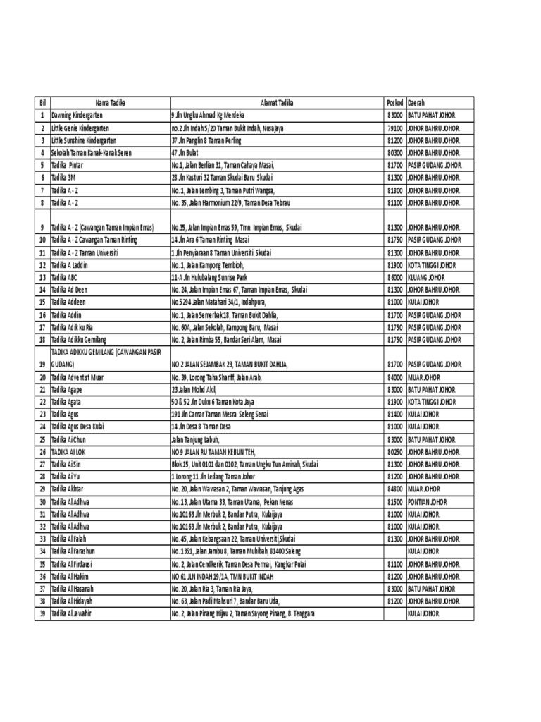Johor Nama Premis Alamat 1 Alamat 2 Poskod Bandar Negeri Latitud Longitud Batu 18 Air Hitam Muar Johor 02 2014 Aktif